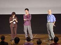 『僕が9歳になったら』のユン・イノ監督(中央)と、通訳で韓国映画字幕ではおなじみの根本理恵さん(左)、映画祭ディレクターでもある映画評論家の佐藤忠男氏(右)/アジアフォーカス・福岡映画祭の西鉄ホールにて