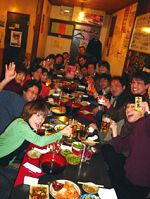 福岡校全職員など総勢20人近くで行った安川先生の壮行会/中州“ふとっぱら”にて