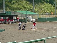 第2打席で3塁打を打った次男/なんかヘッピリ腰みたいだけど、球は意外に伸び、走塁もうまくて3塁打に!