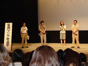 福岡アジア映画祭の上映後のティーチインで、一番右が『回し蹴り』のナム・サングク監督、ひとり(通訳の人)おいて、撮影のパク・サンフン氏/NTT夢天神ホールにて