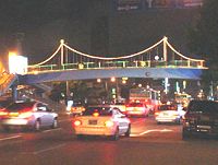 どこぞの橋のようにライトアップされた、ただの歩道橋! いやぁ、遊び心があっていいなぁ!/釜山鎮駅近くにて