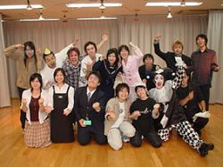 遅ればせながら、学院祭での1年生の舞台発表の集合写真(10月1日分)です! 劇団自負FC『正しい「不幸」の作り方』[風]/トップバッターで、みんななかなか緊張してた! 2005学院祭にて10月1日上演