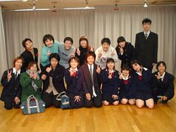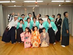 学院祭での1年生の舞台発表の集合写真、第二弾(10月2日分)! 劇団いき≠ばた『絆という名の奇跡』[光]/いじめ役の子たちが、普段はおとなしいんだけど、水を得た魚のように生き生きと演じていて、リアルだった! 2005年学院祭にて10月2日上演