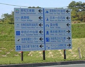 御船インターを下りると、いろんな名所が書かれている看板があった!/熊本は、時間があればまた行ってみたいとです!