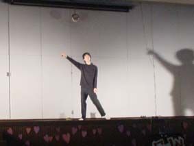 一人芝居・その2/照明や音響は友人が手伝ってくれて、シンプルだがそれなりに出来ているが、いかんせん声が聞こえない! 耳に掛けるワイヤレスマイクとか使えば、それなりに、カッコよかったかも!