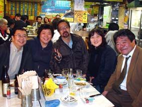 ![]() 上野・アメ横の焼き鳥屋「大統領」の、屋台のような店先で、左から私、コ・スヒ嬢、熊谷氏、キム・ミソン嬢、熊谷氏の友人A氏/とにかくこの日は寒かった! ストーブ炊いてたもん! ![]() スヒが選んで買ってくれたお薦めの韓国食品の数々/右下にあるのがノビアニで、その上が3種類のラーメン。左が韓国海苔で、ここのが一番おいしいらしい。その下にあるのがインスタントのおかゆ2種類。少しずつ食べてる。 ![]() お多幸にて、おでんと熱燗で乾杯!/韓国では、お酒を温めて飲むことはないらしい。温めるとしたら、日本酒だとか。二人とも熱燗も結構いけるくち。 |