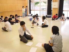 高校演劇部員のためのワークショップ1/「同台詞異状況」の発表に向けて、まずはしっかりと話し合いをして設定を決めていくのだが、この段階ですでに細かい設定を想定しているところが多く、期待が持てた!