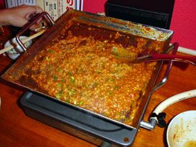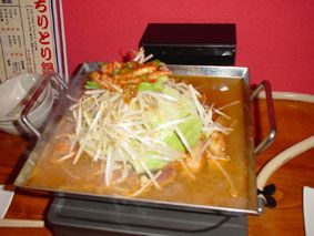 これが噂のちりとり鍋! だしは甘めだったが、キムチや野菜でちょうどいい味になるし、ホルモンはいろいろ入っていて美味かった! 〆のおじやは残りのだしの量で味が変わるのかな? だしを足してもらったら、かなり甘めになったけど、平らげて満腹!