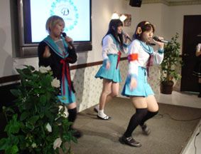 DCSライブin「めいどinじゃぱん」その1/声優科の3人娘による『涼宮ハルヒの憂鬱』のエンディング・テーマ「ハレ晴れユカイ」の熱唱! もちろん、コスプレ・踊り付き!