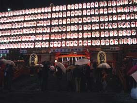 一の酉の花園神社の本殿前に飾られたすごい数の提灯/まさに壮観という感じだが、雨なので石段も滑るし、地面はグチャグチャだし、残念!