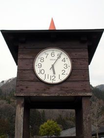 トリックアート美術館の外にある不思議な時計/どう見ていいのか一瞬わからないが、これで12時25分