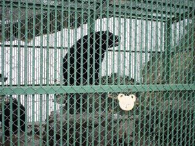 小さい頃に行った時の記憶に残っていた熊はやはりいた! 小熊が全部で5匹/今は檻の中にいるが、昔は熊も一緒に温泉に入ったらしい