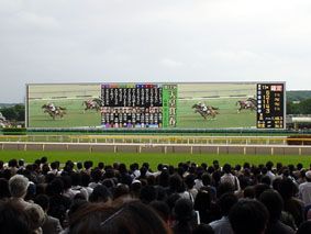東京競馬場の高さ11.2m、幅66.4mで2651型という世界最大のマルチ画面のターフビジョンで観る、第137回天皇賞のゴール前、アドマイヤジュピタとメイショウサムソンのデッドヒート!/いやぁ、馬券はともかく、天皇賞史に残る素晴らしいレースだった!