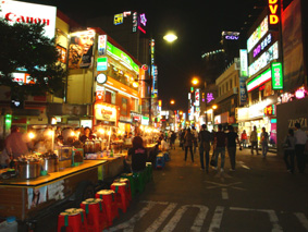 夜の大学路の一角/屋台も出てるし、演劇の街であり、若者の街だが、のんびり安心して飲めるのがいい