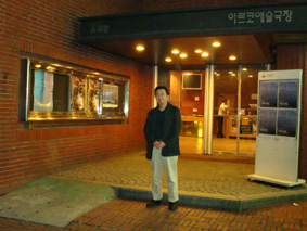 アルコ芸術劇場の前で/大学路のマロニエ公園とその周りの雰囲気はいい。日本にもこういう芸術の街が出来るといいのに