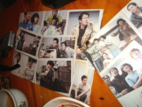 「イー モプスル クリウン サラマー」のテーブルにあった舞台稽古の写真/中央の上がパク・グニョンで、その下に、チョ・ジェヒョンやコ・スヒらの写真がある