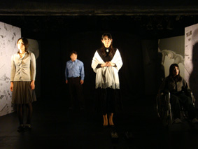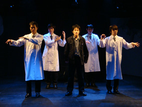 舞台写真2/生まれた奇形児の説明を聞くジェギュ(中央)と医者たち
