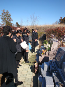 晴天の下行われた、家の近くの霊園での義母の一周忌/周囲の見晴らしはいいし、近くには桜の木がいっぱいある公園もあって、義母は安らかに眠っていることだろう