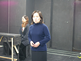 稽古場写真3/中央が、かんのひとみで、後ろは代役の日和佐美香