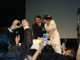 6/恒例のケーキカットの時には、ステージの前はデジカメや携帯のカメラが次から次へとバシャバシャ!