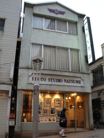 レトロな雰囲気が残っている、坂の途中にある創業70年という夏目写真館/神楽坂は、近くに住んでいた夏目漱石もよく散歩していて、作品中にも出て来るが、夏目漱石とこことは関係がないとのこと