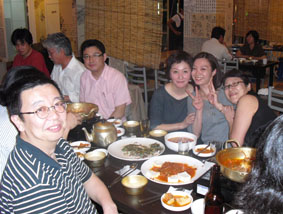 しばらくして、別のところに行っていたベンちゃん(右)、石塚(中央)、妻(左)たちもやって来て、サンナクチを食べた!/ここはハッテン場で有名なところらしく、よく見ると、右や後ろの方は男性のカップルばかり!
