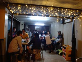 10月11日の夜、青木さんと野毛の三陽に行ったら、本店は満員で、初めてそこから少し離れたところにある別の場所に連れて行かれて飲んだ/どこかの家の駐車場らしいが、まるで、韓国の屋台のよう!