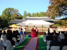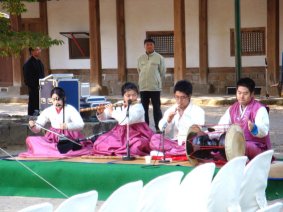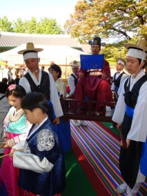 厳かに雅楽(?)が演奏されて、いよいよ韓国の伝統式結婚式が始まる!