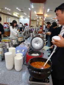 式の後は、バイキング形式の食事が振舞われ、いろいろな韓国料理が一度に楽しめる/右端にいるのは中村さん