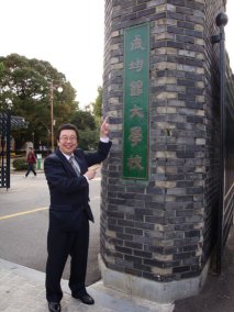 ヨン様もムン・グニョンも通った成均館大学の門の前で/m前に学習院や東大の門の前でも写真を撮ったことがあり、中村さんに「門が好きなの?」といわれた