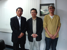 韓国と日本のアニメ状況やアフレコに関する話をした会社の代表の李さん(私の右)と音響監督さん(左)/李さんは、日本の声優学校を見学したいといっていたので、いつでも来て下さいといった