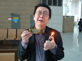 これがスヒの結婚式の引き出物(?)の大きなライター/ちゃんと旦那とスヒの名前と日付が書かれていて良かったのに、仁川空港でお別れ!